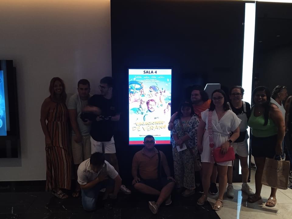El pasado viernes los chicos y chica de Ocio y Tiempo libre de Ahinco Conil fuimos al cine de Bahía Sur, como somos de gustos diversos algunos comimos en el pomodoro y otros comimos en McDonald’s, después de ir a ver la cartelera todos decidimos al unísono que queríamos ver Vacaciones de verano de Santiago Segura. Nos reímos muchísimo. Nos encantó.