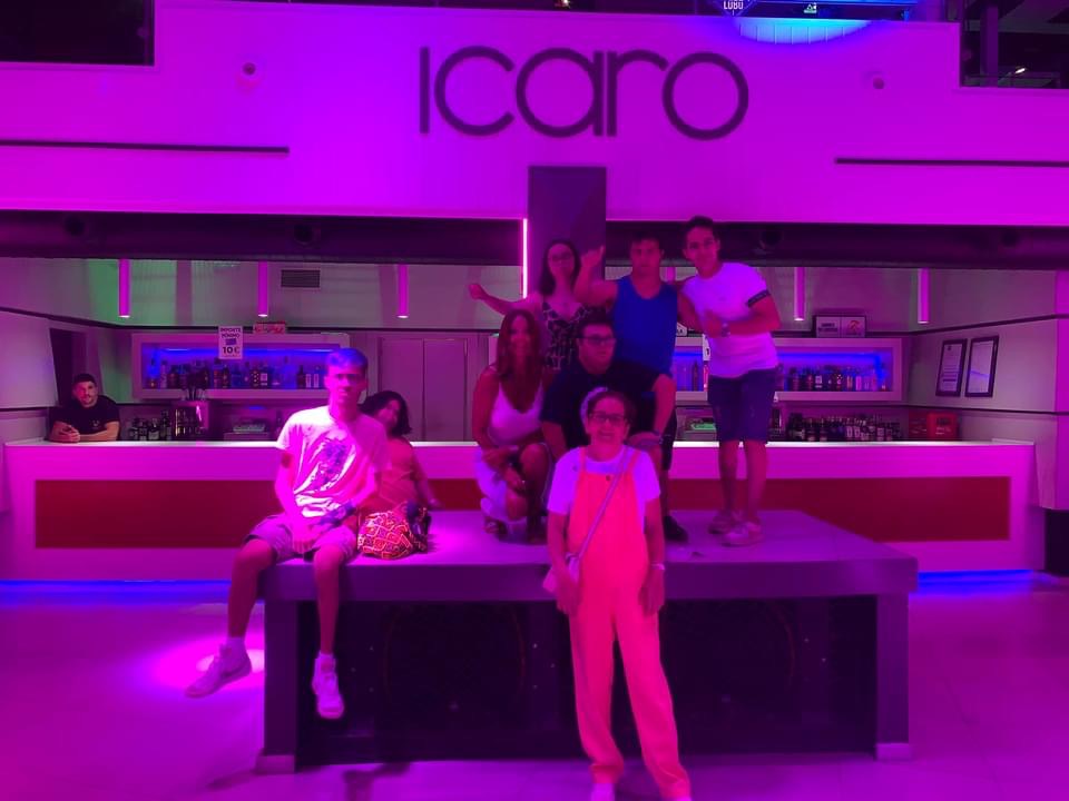 El grupo de Ocio y tiempo libre disfrutando de la noche conileña. Cena en una de nuestras pizzerías favoritas de Conil, Itañolo y ahora en la mejor discoteca de la provincia, Ícaro.