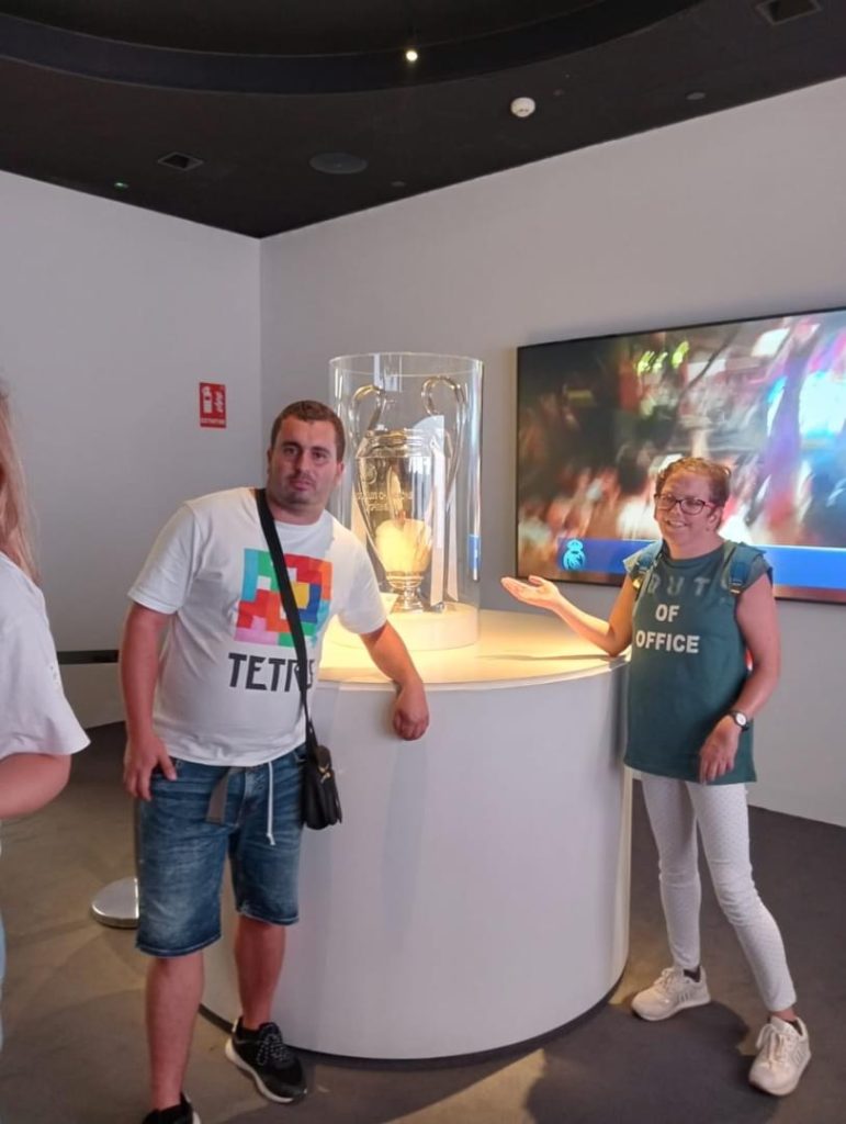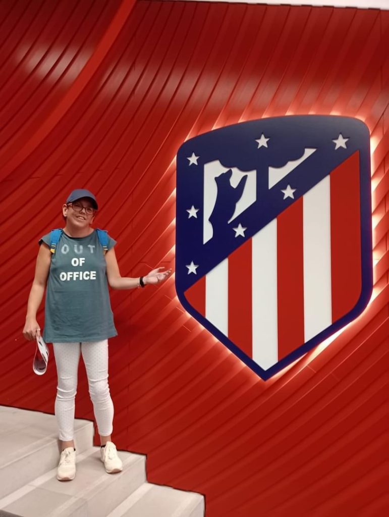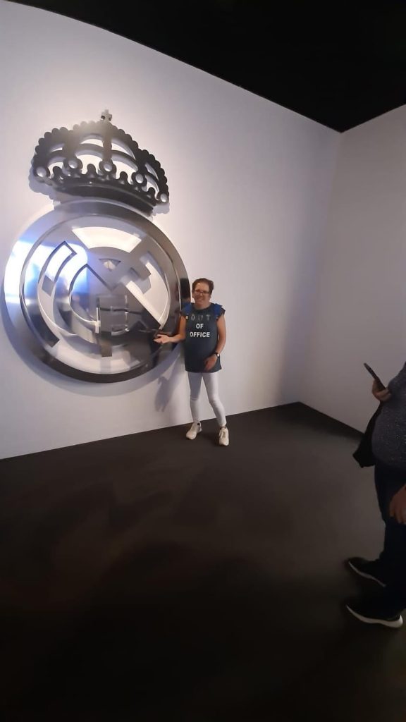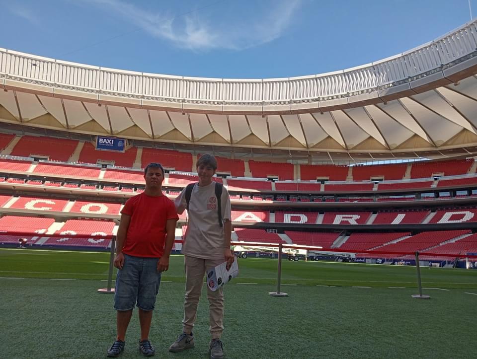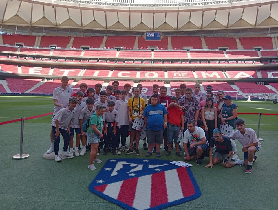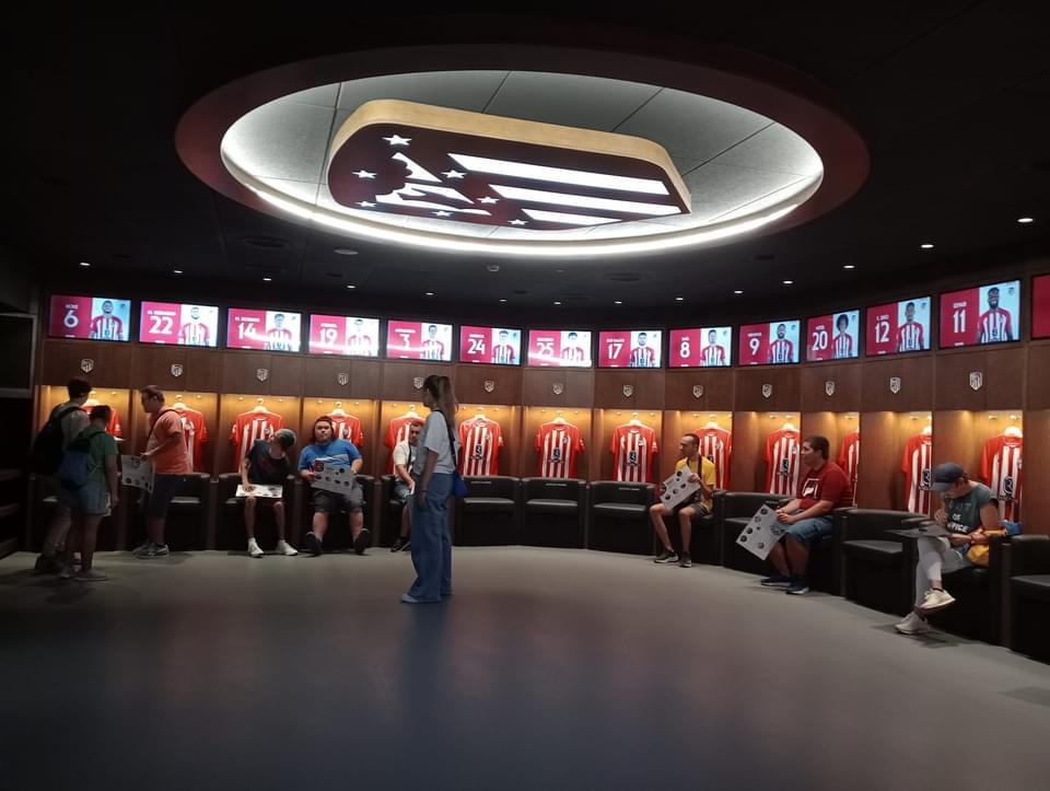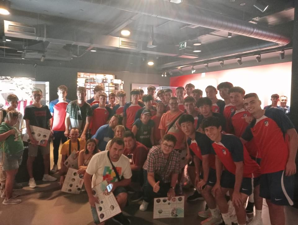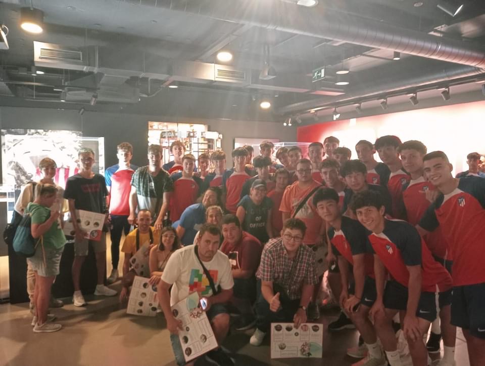 Entre las muchas visitas, hemos visitado el campo del Real Madrid y el campo del Atlético de Madrid. En el del Atlético es de agradecer que durante la visita estuviéramos haciendo un juego de preguntas sobre el club que hizo que todos miráramos con más detenimiento cada etapa del camino.